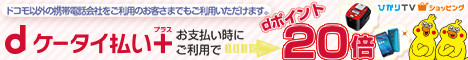 ひかりTVショッピングの決済方法に、NTTドコモの『dケータイ払いプラス』が2月22日(水)より追加される事を記念したキャンペーンで、期間中に『dケータイ払いプラス』で支払いをすると、支払い金額に応じてdポイント20倍(通常100円(税込)につき1ポイントのところ20倍)がプレゼントされます。